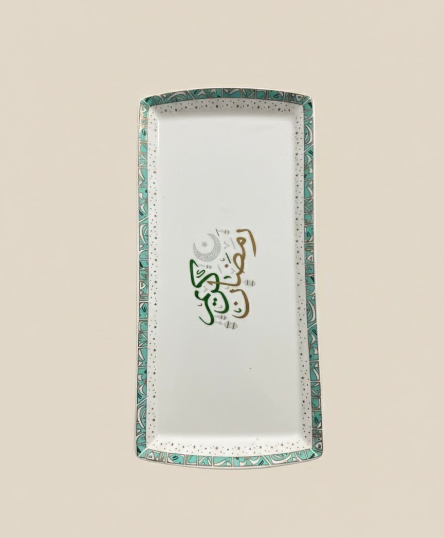 A beautiful, elongated porcelain tray perfect for serving dates, sweets, or appetizers during festive gatherings.