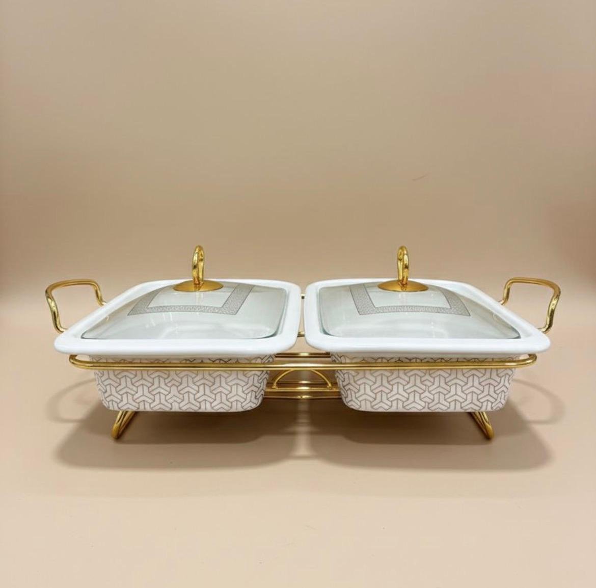 Keep your dishes warm and your table looking sharp with this Double Casserole Serving Set. Designed for hosting, it makes serving multiple dishes at once simple and stylish.