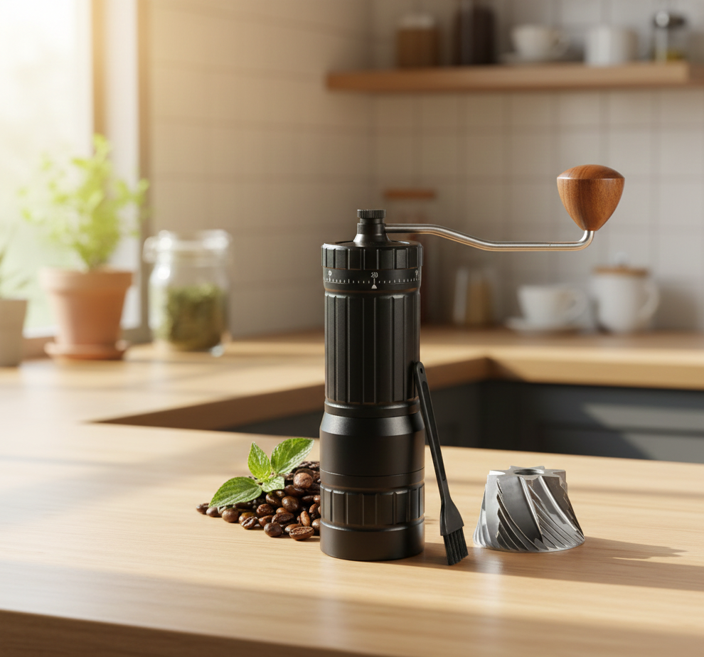 One of the key highlights of this manual coffee grinder is its compact and portable design. Perfect for travel, camping, or simply saving space at home, this grinder is lightweight and easy to carry. The integrated viewing window lets you monitor the grinding process with ease, while the non-slip grip base keeps the grinder steady during use, preventing any spills or mess.