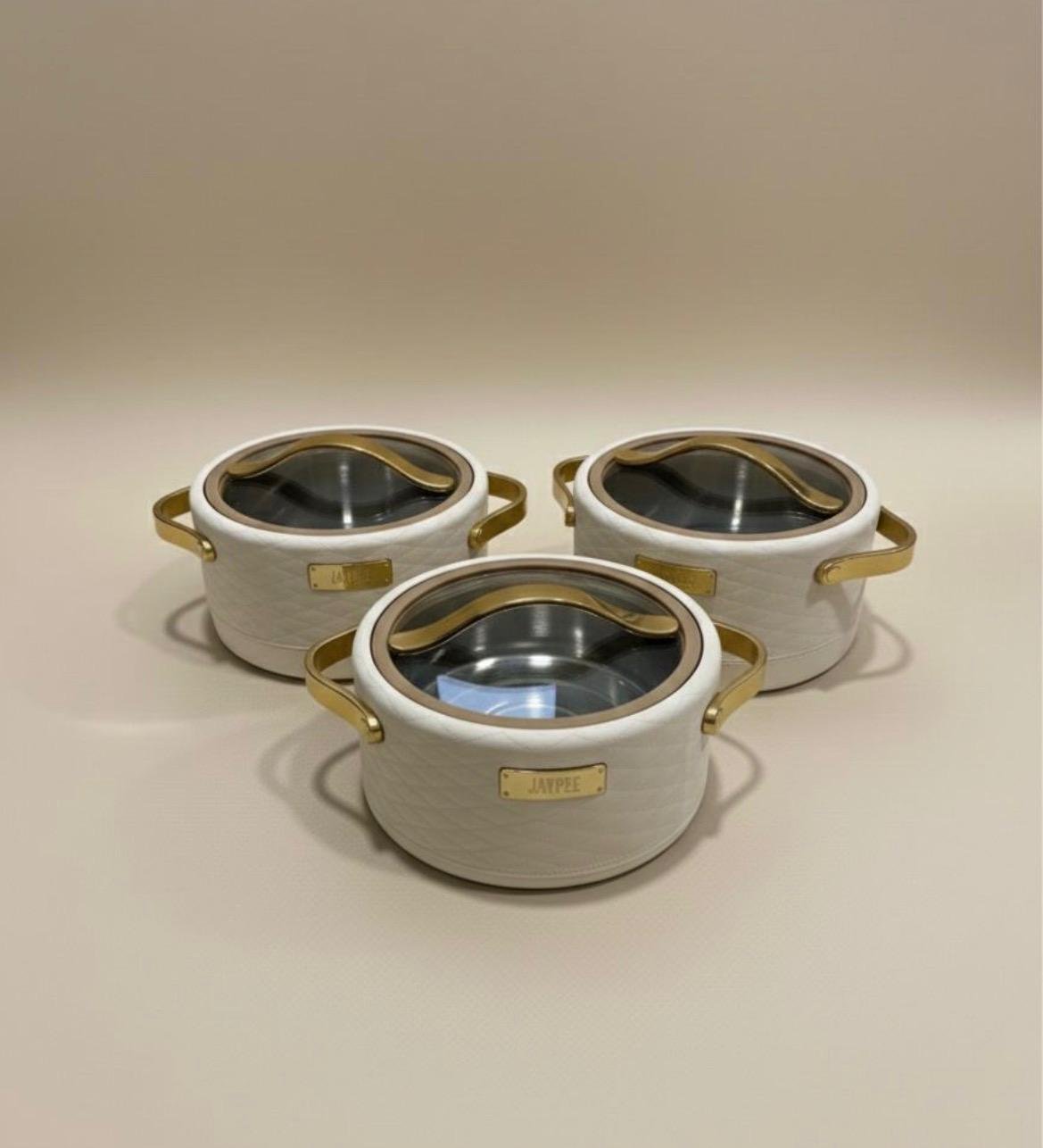 Elegant Design: Features a textured outer finish and metallic handles that add a touch of luxury to your food presentation.