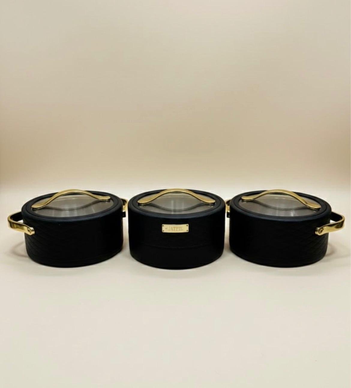 Elegant Design: Features a textured outer finish and metallic handles that add a touch of luxury to your food presentation.