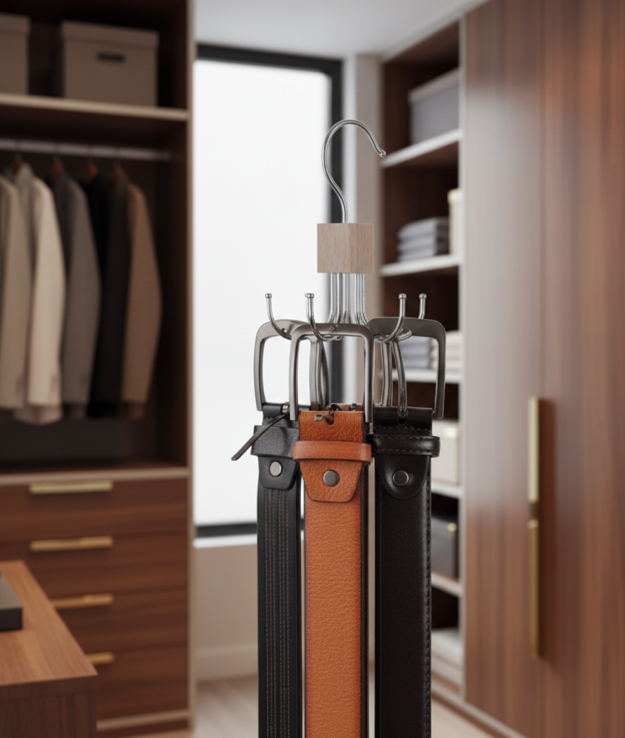 Whether you’re organizing belts for personal use or showcasing accessories in a retail environment, this elegant hanger adapts seamlessly to suit your needs. Simplify your life, declutter your space, and elevate your storage solutions with the versatile belt organizer today.