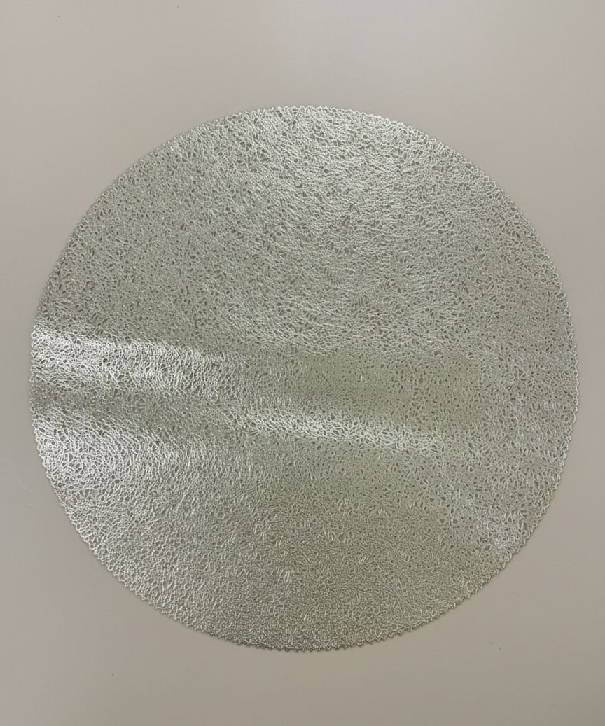 A simple yet stunning circular placemat with a fine, sparkling mesh texture that catches the light from every angle.